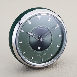 A discreet button on the back of the clock activates a built-in light that softly illuminates the dial, providing enhanced visibility in low-light environments.